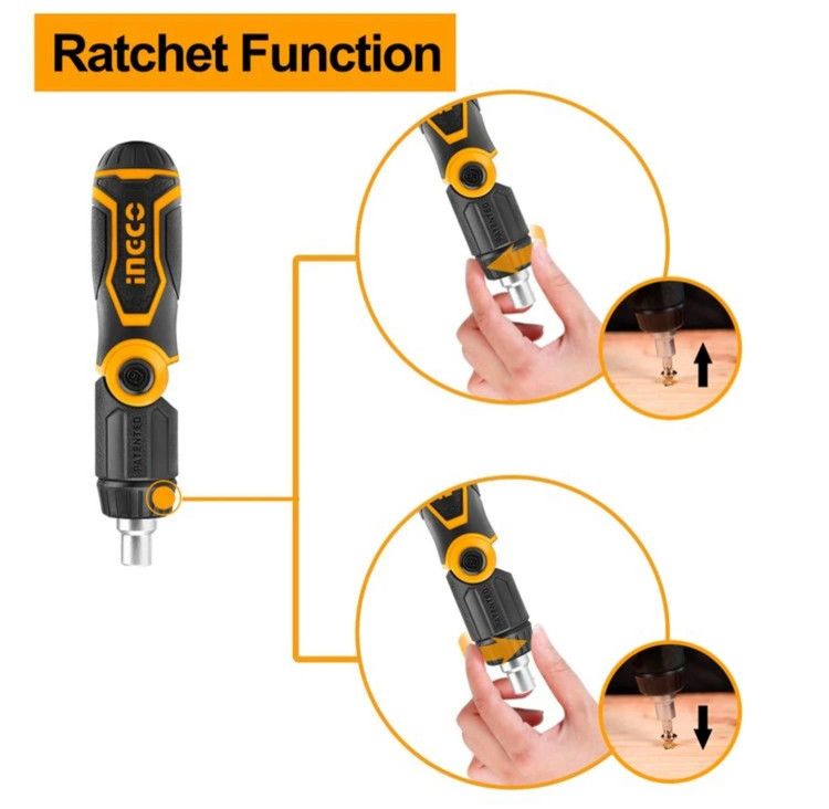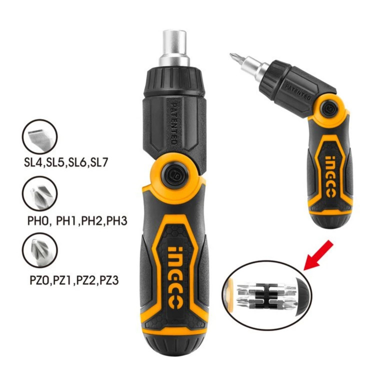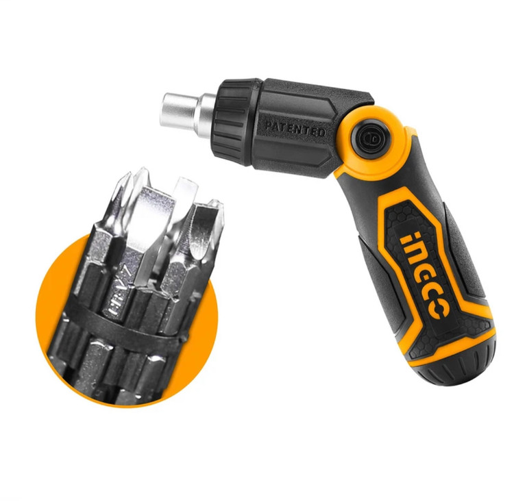 ست 13 عددی پیچ گوشتی جغجغهای اینکو مدل AKISD1208 که توسط شرکت اینکو ثبت اختراع شده است، دارای 12 عدد سری مختلف و یک دسته است که همگی از آلیاژ با دوام کروم-وانادیوم ساخته شدهاند. این مجموعه پیچ گوشتی آهن ربایی اینکو شامل چهار عدد سری دوسو با سایزهای SL4 , SL5, SL6 , SL7، چهار عدد سری چهارسو به سایزهای PH1، PH0 و PH3, PH2 و چهار عدد سری چهارسوی خاردار به سایزهای PZ0 , PZ1 PZ2, PZ3 است که دارای خاصیت آهنربایی هستند. دستهی این پیچ گوشتی، علاوه بر این که به صورت تاشو است تا کنترل و دقت شما را در شرایط مختلف کاری بالا ببرد، دارای قابلیت جغجغه ای با جغجغهی 32 دندانه میباشد و می توان با کمک آن، برای راحتی و تسریع کار، جهت چرخش را انتخاب کرد. این دسته که از جنس پلاستیک و به صورت ارگونومیک طراحی و ساخته شده است دارای محفظهای در درون خود است که 12 عدد سری مختلف در درون آن قرار میگیرند و به راحتی حمل و نقل میشوند. شفت مرغوب و باکیفیت این دسته، به گونه ای ساخته شده تا مقاومت و استحکام خوبی در برابر فشار و اعمال نیروی زیاد از خود نشان دهد. امکان تعویض سریع و راحت سریها بر روی این دسته فراهم است و پس از نصب سری ها، چفت شدن سری ها بر روی دسته بدون حرکت، لقی و لغزش اتفاق میافتد. این پیچ گوشتی مگنت دار فقط 192 گرم وزن دارد و با ابعاد 3.5 × 3.5 × 16سانتیمتری خود ساخت کشور چین است. میتوان از این مجموعه در کارهای صنعتی و عمومی استفاده کرد.